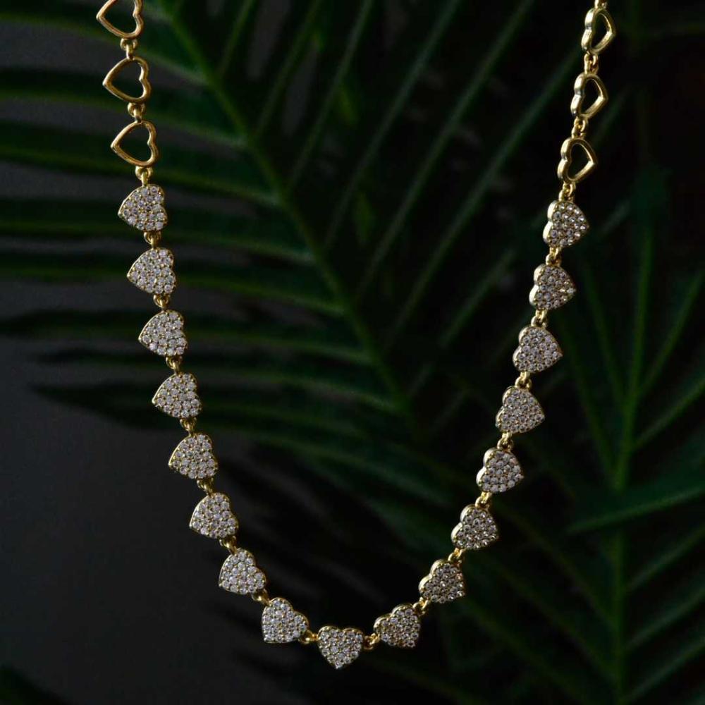 [N038] تشوكر قلب مطلي ذهب ومزين بالزركون