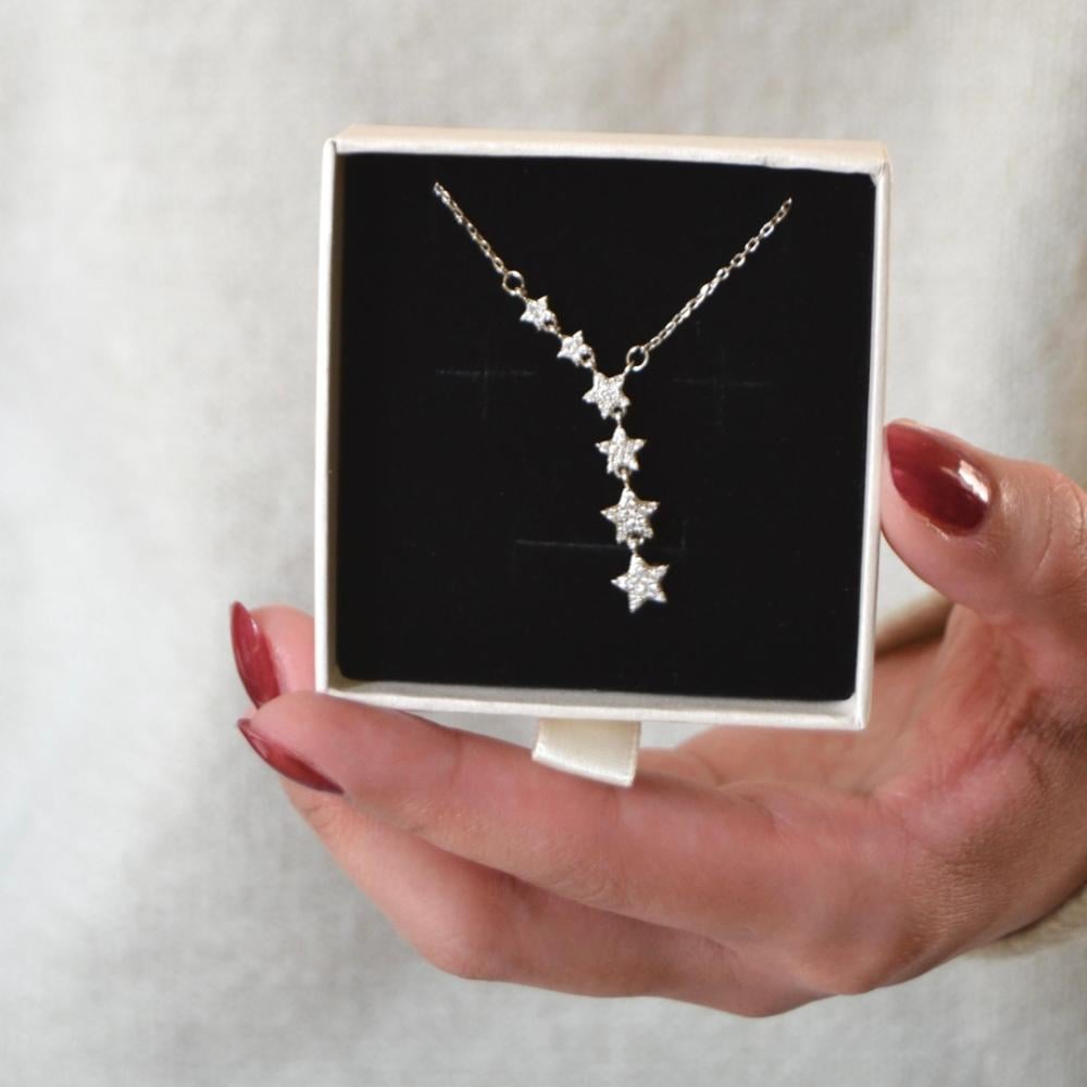 سلسال من الفضة الخالصة عيار 925 مطلي بالذهب ومزين بالزركونطول السلسلة: 40 + 5 سم سلسلة إضافيةلا يتغير لونه ولا يسبب حساسية ولا يترك اثر اخضر على الجلدتأتي بعلبة ايميرالد الأنيقة وقماش لتلميع المجوهرات